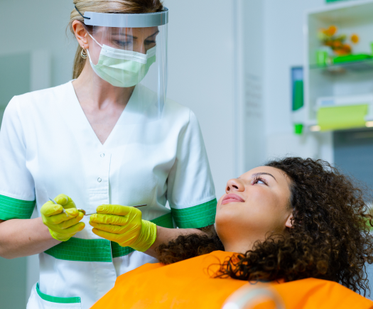 With ezlase teeth whitening, a hydrogen peroxide-based gel is applied to the teeth and then activated by the laser to whiten yellowing and graying teeth. Because ezlase whitens teeth more quickly than the other teeth bleaching methods, there is less sensitivity and discomfort. If you’d like a bright smile in a fraction of the time, The Super Dentists can determine if ezlase is a tooth whitening option for you.